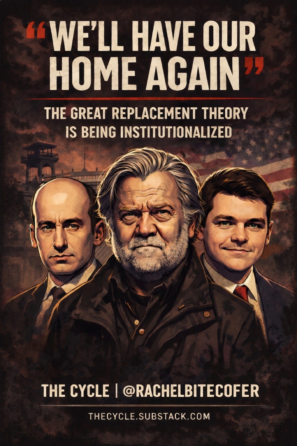 “We’ll have our home again” is the emotional core of Great Replacement ideology, the white nationalist belief system that frames demographic change as dispossession and recasts the nation as something that has been stolen and must be taken back. This is the same worldview that produced the chant “You will not replace us” at Charlottesville. The only thing that has changed is who is now saying it.